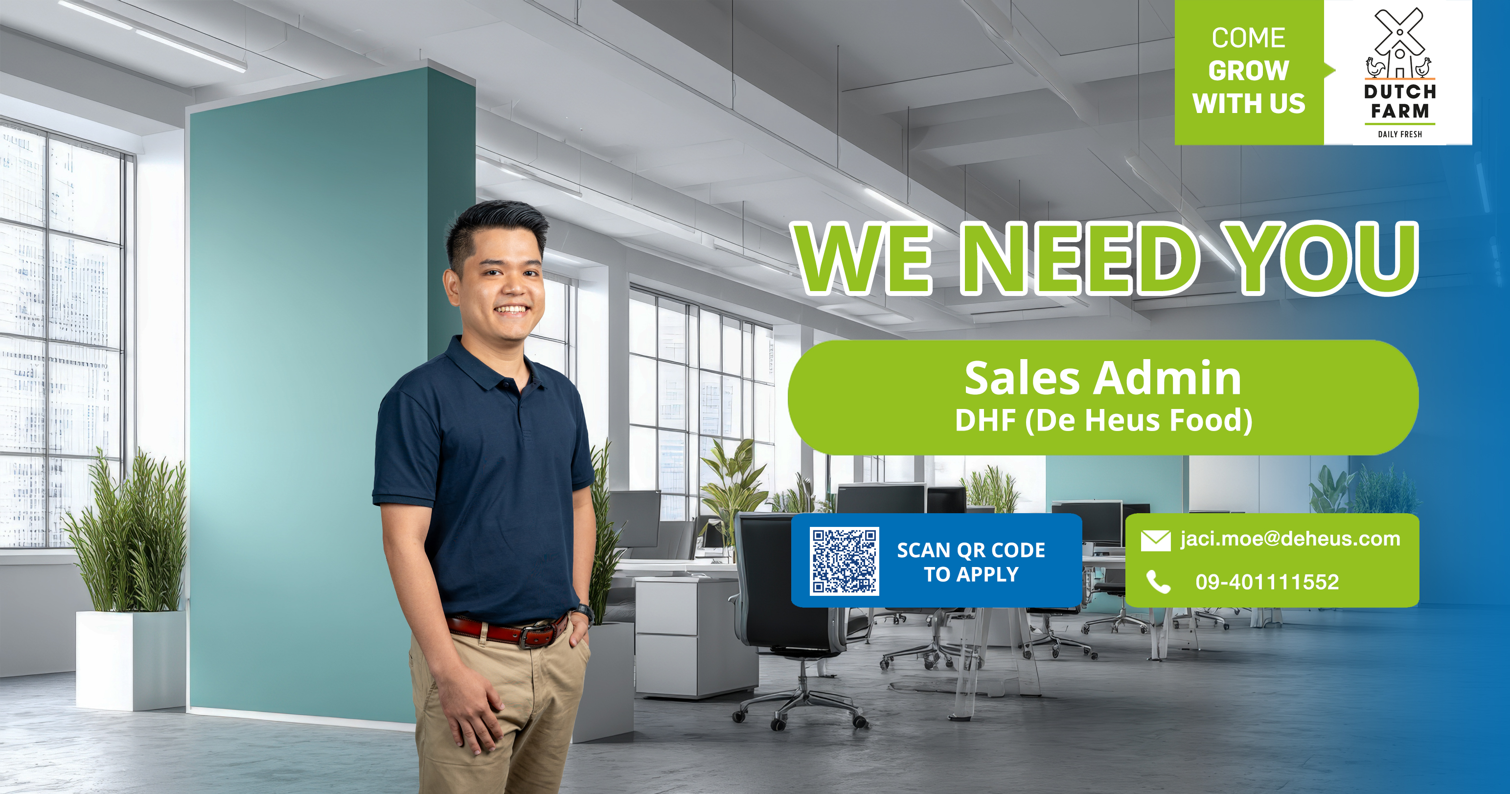 အလုပ်အကိုင်အခွင့်အလမ်းများနှင့်ပတ်သတ်ပြီးမေးမြန်းသိရှိလိုပါကကျွန်တော်တို့၏ HR Department E-Mail (dhmmrecruitment@deheus.com) သို့တိုက်ရိုက်ပေးပို့မေးမြန်းနိုင်ပါတယ်။