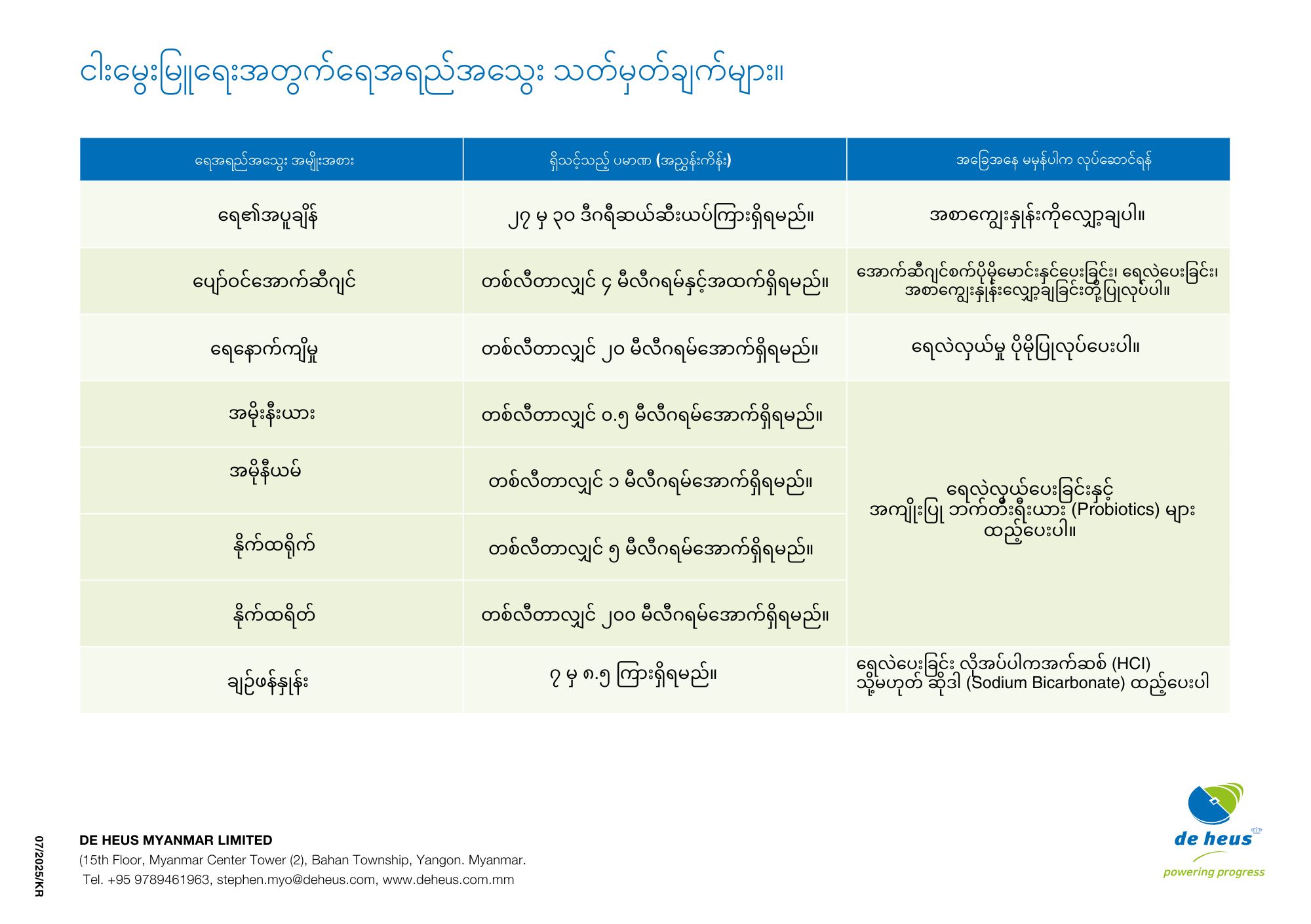 လမ်းညွှန်အဖြစ် အစာကျွေးနှုန်းဇယားများကိုအသုံးပြုပါ။ရေသန့်ရှင်းနေသရွေ့ ငါးများသည် ကျန်းမာသန်စွမ်းပြီး အမြန်ကြီးထွားမည်ဖြစ်သည်။ အောက်ဆီဂျင်၊ အမိုးနီးယားနှင့် ရေအပူချိန်တို့သည် ငါးများ၏ ကျန်းမာရေးနှင့် အစာစားနှုန်းကို တိုက်ရိုက်သက်ရောက်မှု ရှိပါသည်။ ပတ်ဝန်းကျင် အခြေအနေနှင့် အစာကျွေးသည့် ပုံစံကြောင့် ဤအချက်များ ပြောင်းလဲနိုင်သဖြင့် သင့်ငါးများအတွက် အကောင်းဆုံး အခြေအနေရရှိစေရန် ရေအရည်အသွေးကို ပုံမှန်တိုင်းတာ စစ်ဆေးရပါမည်။