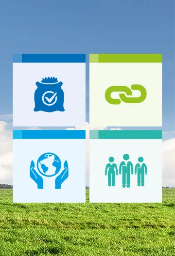De Heus ၏ 'တာဝန်ယူမှုရှိသော အစာကျွေးမွေးရေး အစီအစဉ်' ကို အပြန်အလှန်ဆက်စပ်နေသော အခြေခံအုတ်မြစ်လေးရပ်ပေါ် တည်မှီထားပါသည်။ အဆိုပါအုတ်မြစ်တစ်ခုစီသည် ကြံ့ခိုင်ပြီး ရေရှည်တည်တံ့သော အစားအစာစနစ်အား ပံ့ပိုးပေးသည့် အဓိကအချက်များကို အာရုံစိုက်ထားပါသည်။ ဤအုတ်မြစ်များသည် တိရစ္ဆာန်အာဟာရနှင့် အစားအစာထုတ်လုပ်မှုဆိုင်ရာ အရေးကြီးဆုံးစိန်ခေါ်မှုများကို ကြိုးပမ်းလျက် 'အနာဂတ်မျိုးဆက်သစ်များအား အာဟာရပြည့်ဝစွာ ကျွေးမွေးခြင်း' ဆိုသည့် ကျွန်ုပ်တို့၏ ရည်မှန်းချက်ကို ခိုင်မာစေပါသည်။